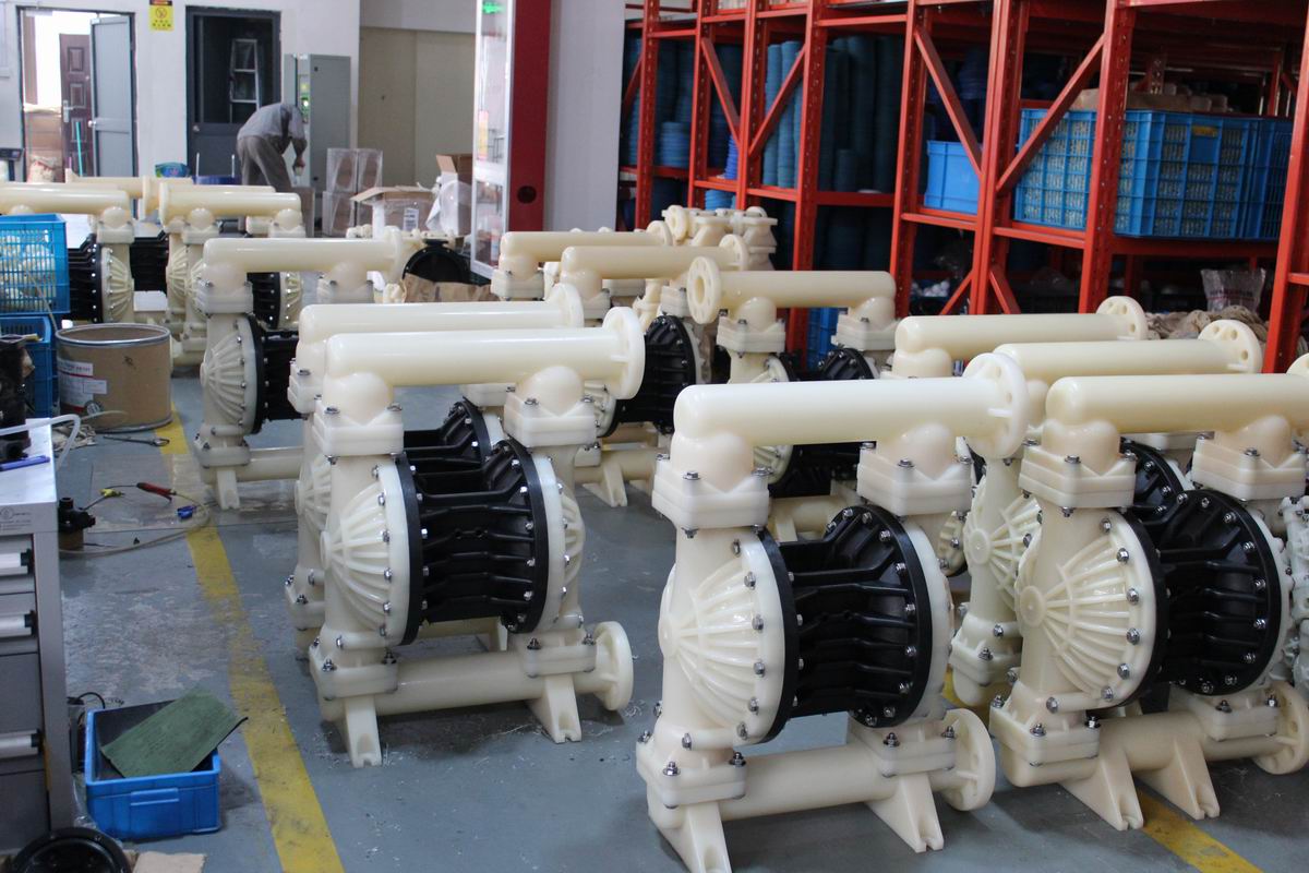 大流量隔膜泵既能抽送流動的液體和干粉,又能輸送一些不易流動的介質,具有自吸泵、潛水泵、屏蔽泵、泥漿泵、和雜質泵等輸送機械的許多有點。比老型QBY氣動隔膜泵流量和揚程同樣口徑的要高出1/2左右。